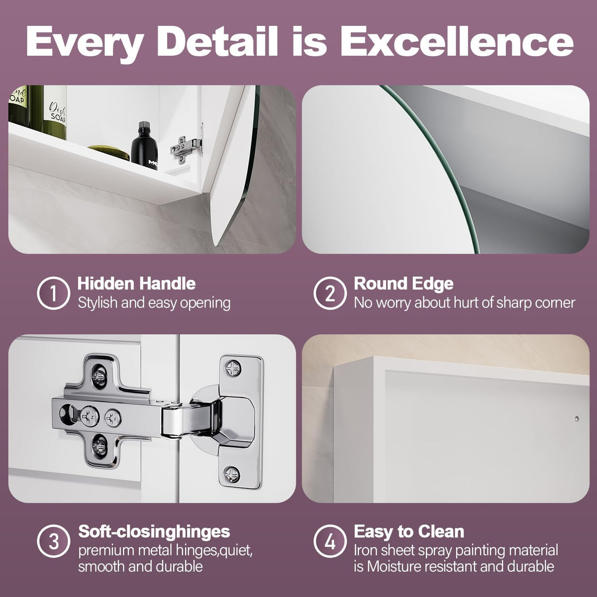 【Two-in-one design】Fashionable and practical mirror ark combination, satisfy any bathroom indispensable two furniture, wall mirror and wall ark.The wall-mounted design does not occupy the ground space and provides large storage space.Perfect for use in bathroom, kitchen, living room, bedroom, entrance area, etc.