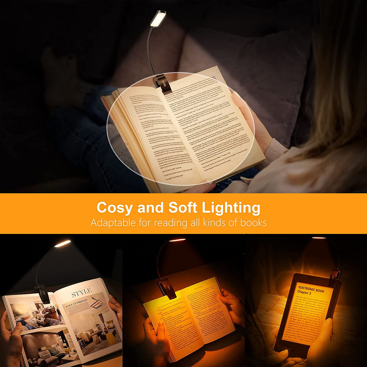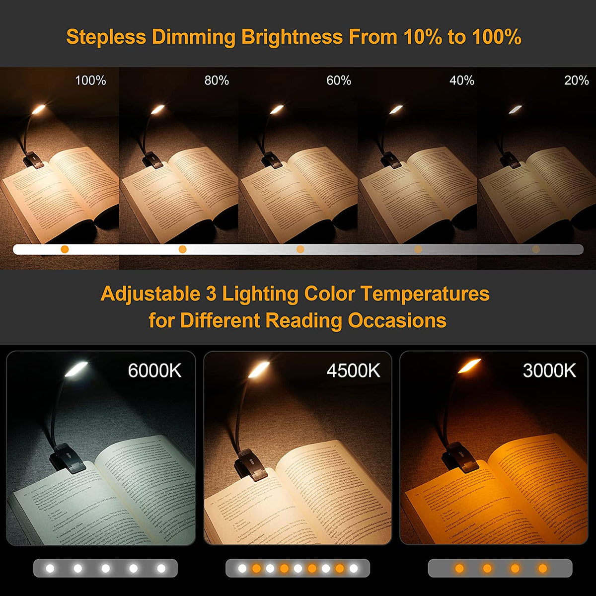 Book Light Rechargeable for Reading in Bed, 9 LED Reading Light Book Lamp with Power Indicator, 3 Eye -Protecting Modes- Stepless Dimming, Long Battery Life, 360° Flexible Clip-On Book Light - Black