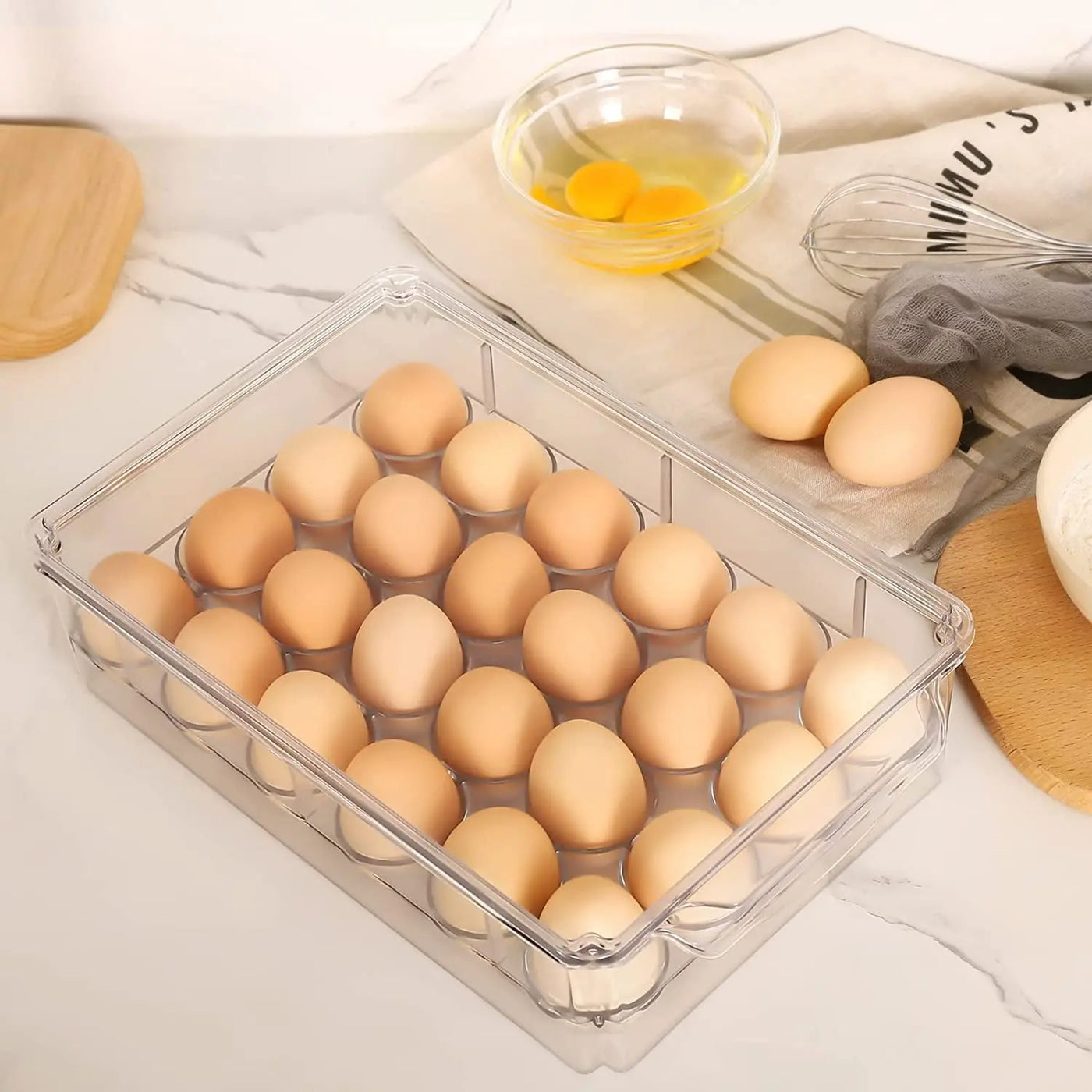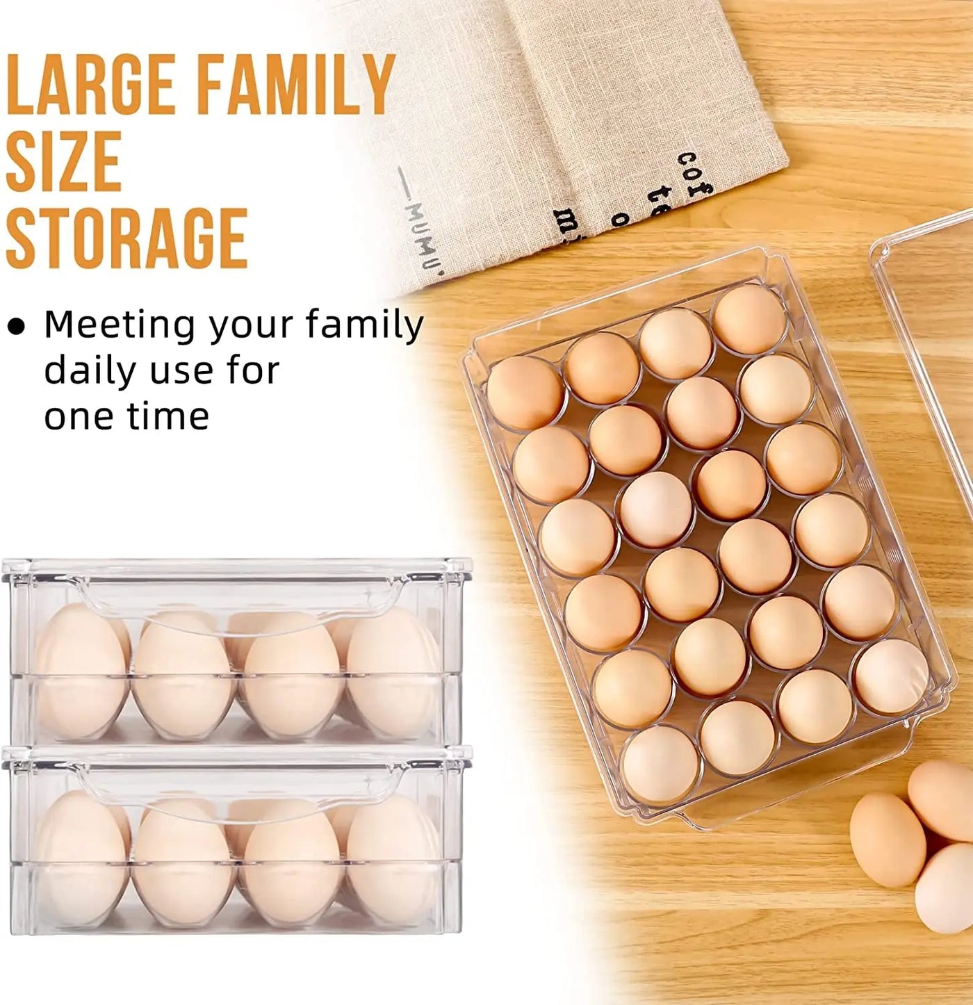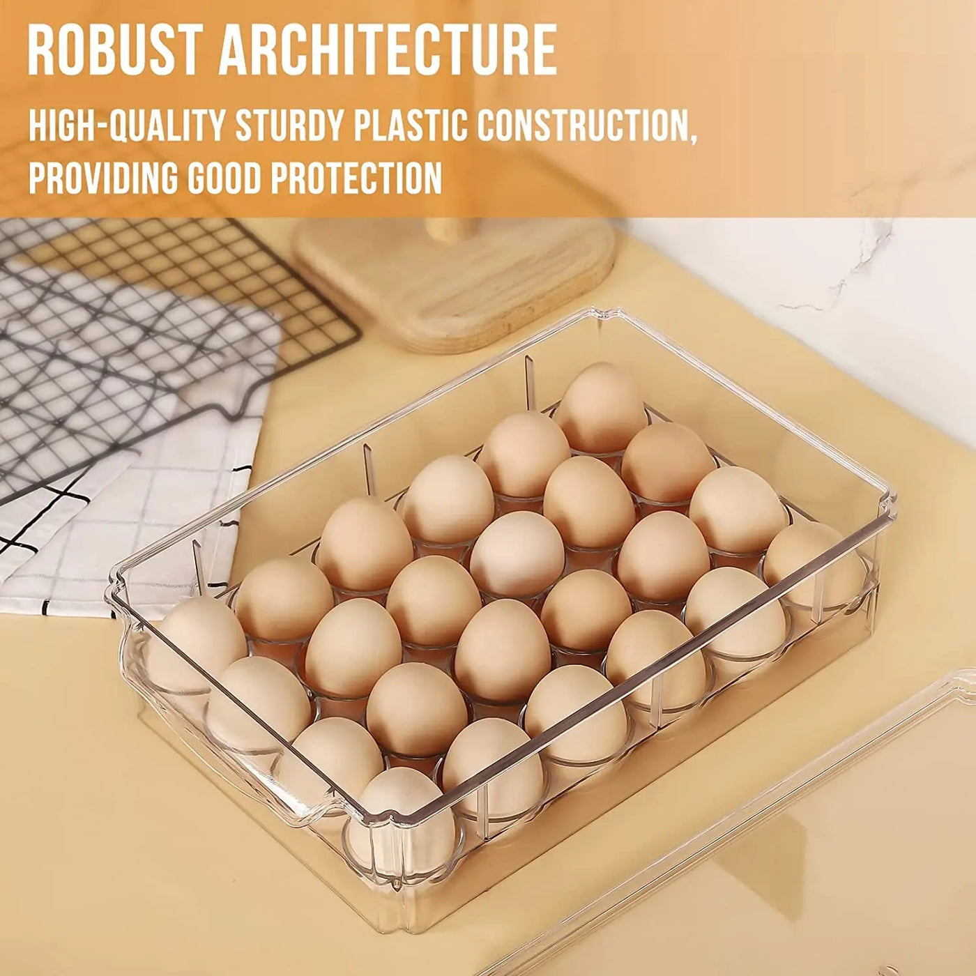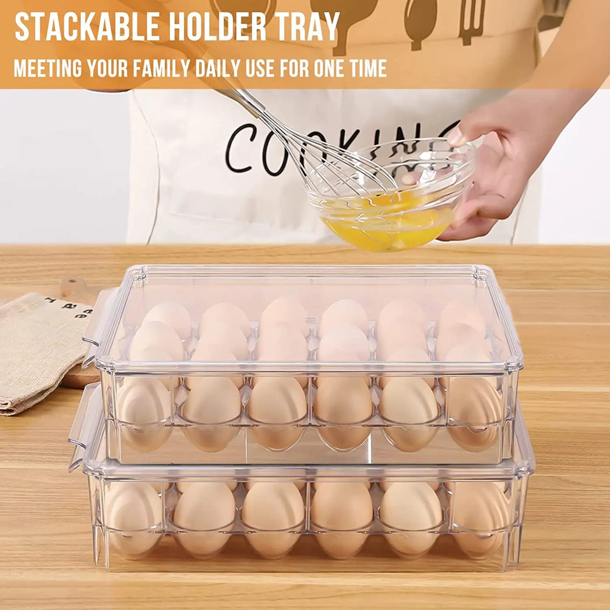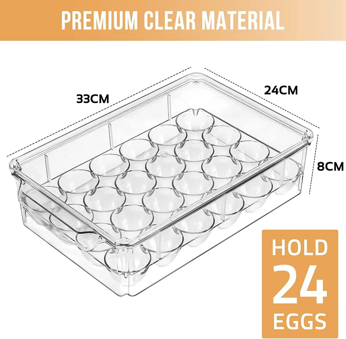 Clear Egg Holder for Refrigerator - Stackable Egg Storage Container with Lid for Fridge Storage, Pantry Organiser, Kitchen Storage & Organisation (24 Eggs)