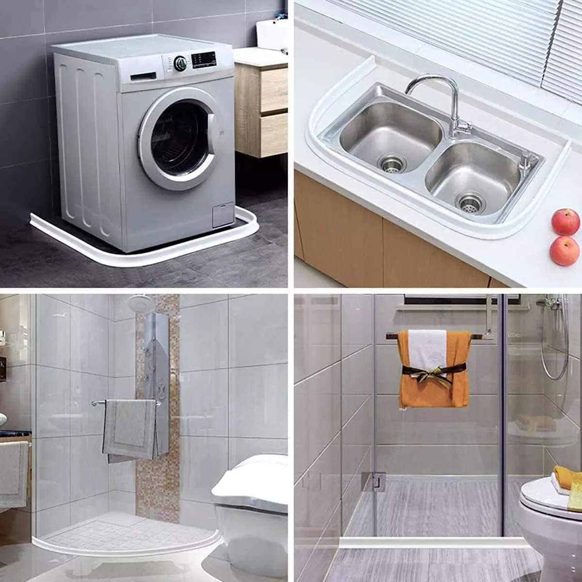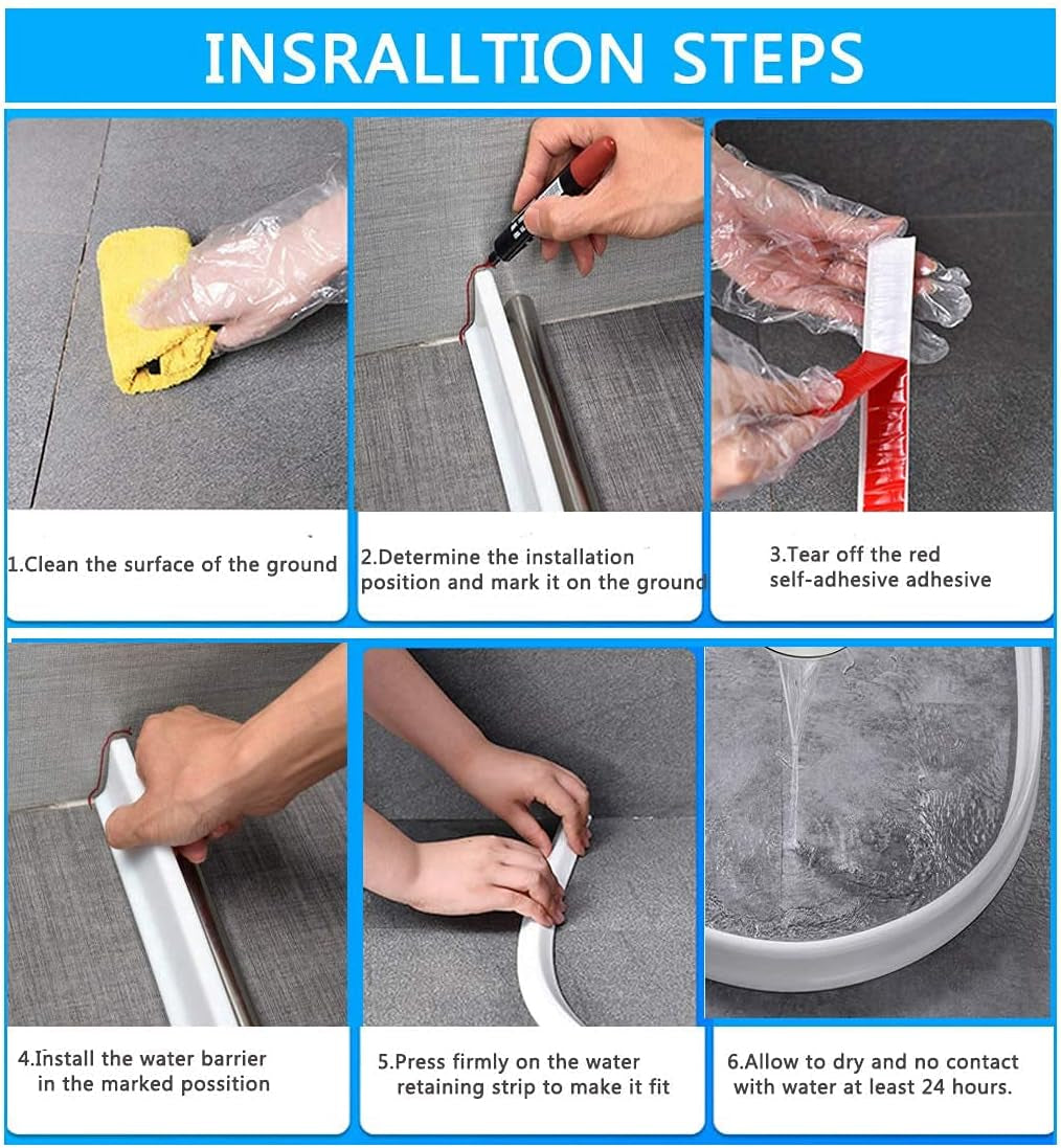 Collapsible Shower Water Dam Threshold Bathroom Water Stopper Flood Barrier Silicone Water Dam inside Dry and Wet Separation for Sink or Shower with Magnetic Strip,160Cm