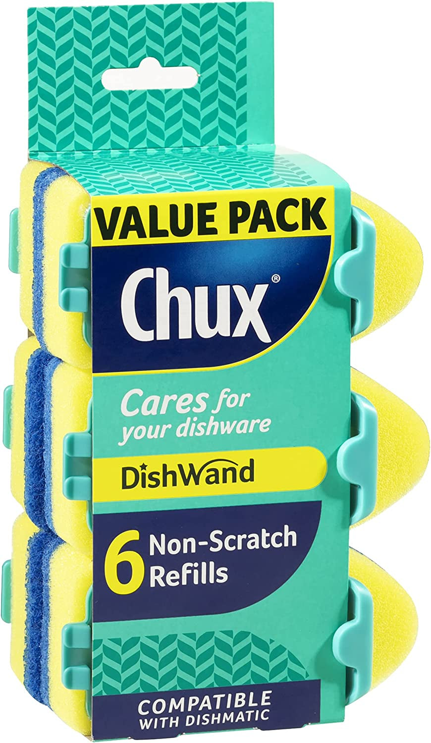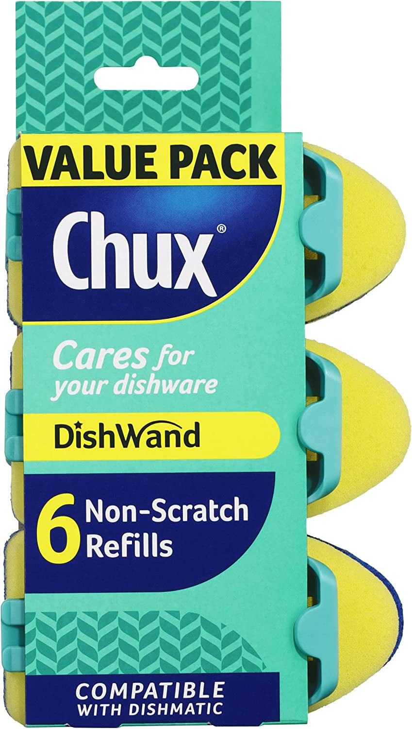 Wash-Up With Chux Dishwand Non-Scratch Refills. These Gentle Scouring Pads Will Safely Remove Grease And Grime From Utensils, Glasses And Dishes So You Can Keep Them In Better Condition For Longer. Plus They’Re Angled To Reach Hard To Clean Areas And Make Cleaning Glasses A Breeze! Compatible With The Chux Dishwand Handle And Dishmatic Handles. Simply Click And Slide On And Off To Change Refills.