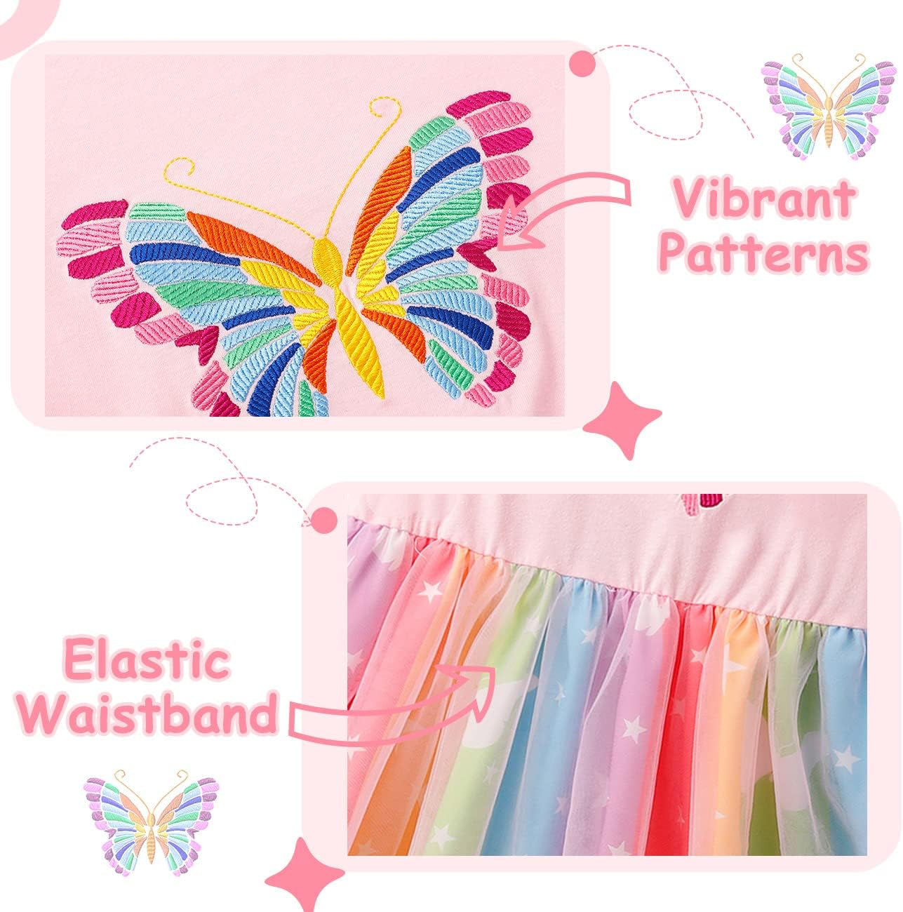 Dress for Girls, Soft Twirly Stretchy Casual Ruffle Daily Dress for Toddler/Little/Big Kid Girls Clothing 3-9T Clothes - Butterfly-Als015 / 6-7 Years