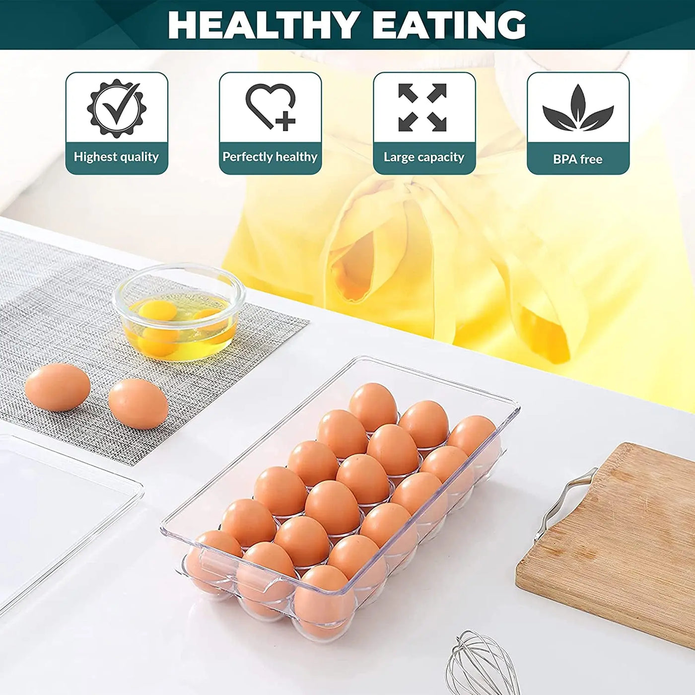 : This durable refrigerator egg storage container is equipped with 18 slots to protect each individual egg. Cover the eggs with the plastic lid and keep them fresh for longer.