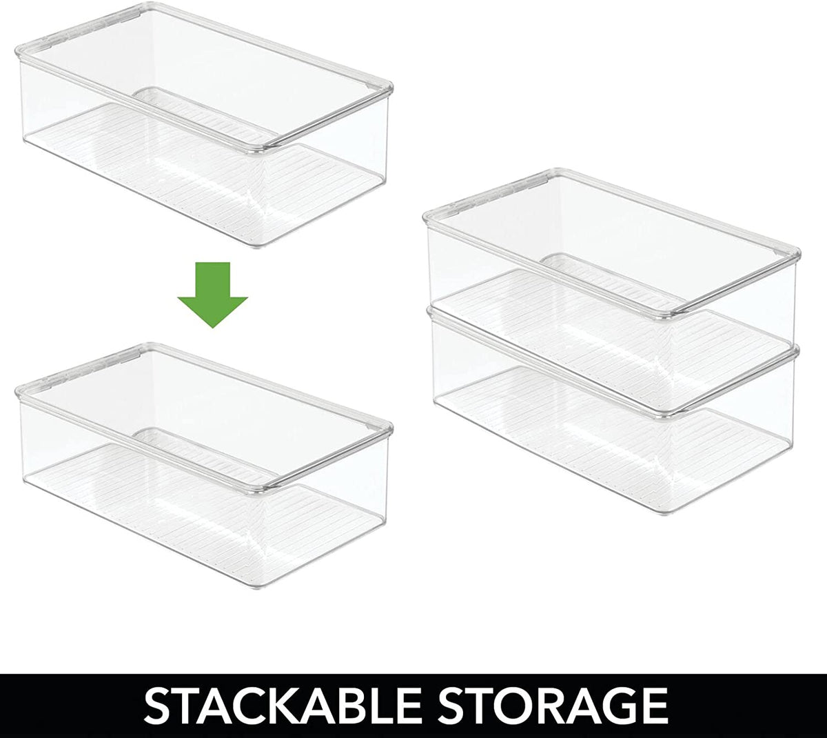 STACK & STORE: The hinged lid easily opens to make grabbing what you need quick and easy; Take advantage of vertical space to maximize your storage potential - stack and store; Use individually or together to create a custom storage system that works for you; mDESIGN TIP - Use one of these bins to store often-needed first aid supplies for your kids - band aids, antibiotic cream, epipens, sunscreen, and bug spray, and you will be ready for the next emergency