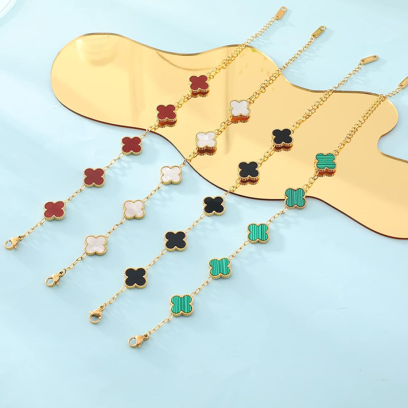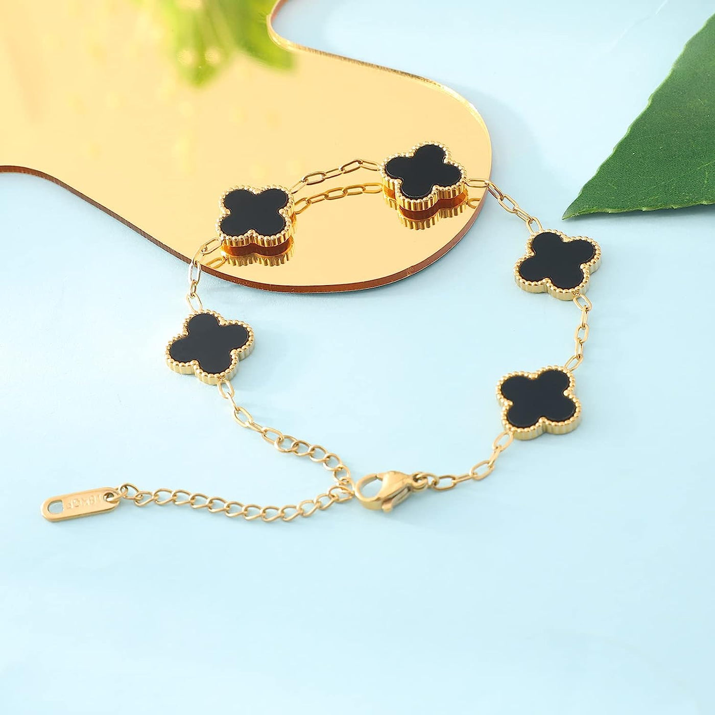 Fashion Chain Bracelets for Women Girls,18K Gold Lucky Adjustable Clover Link Bracelets Valentine'S Day Christmas Gift Jewelry - Stainless Steel / Gold-Black