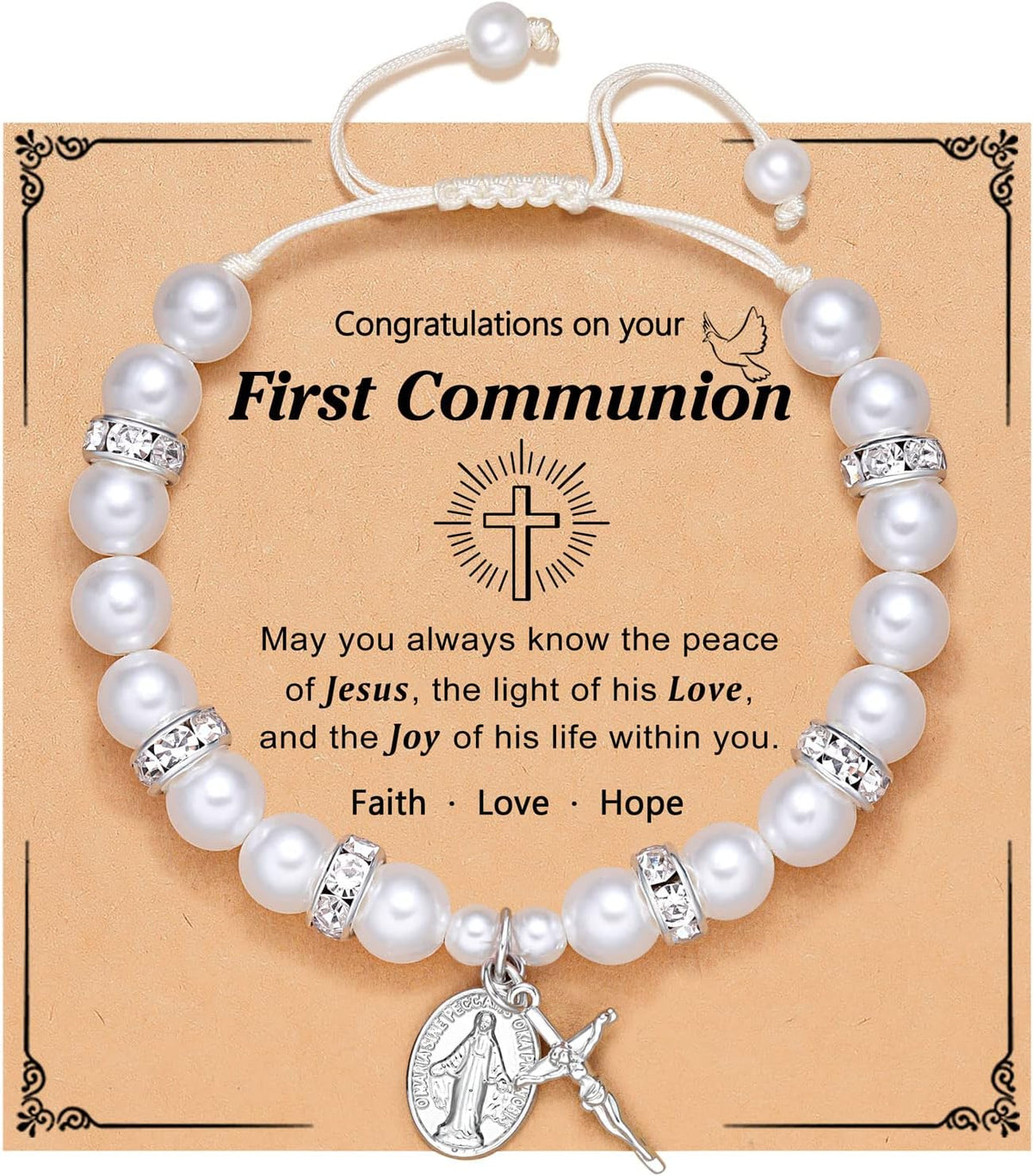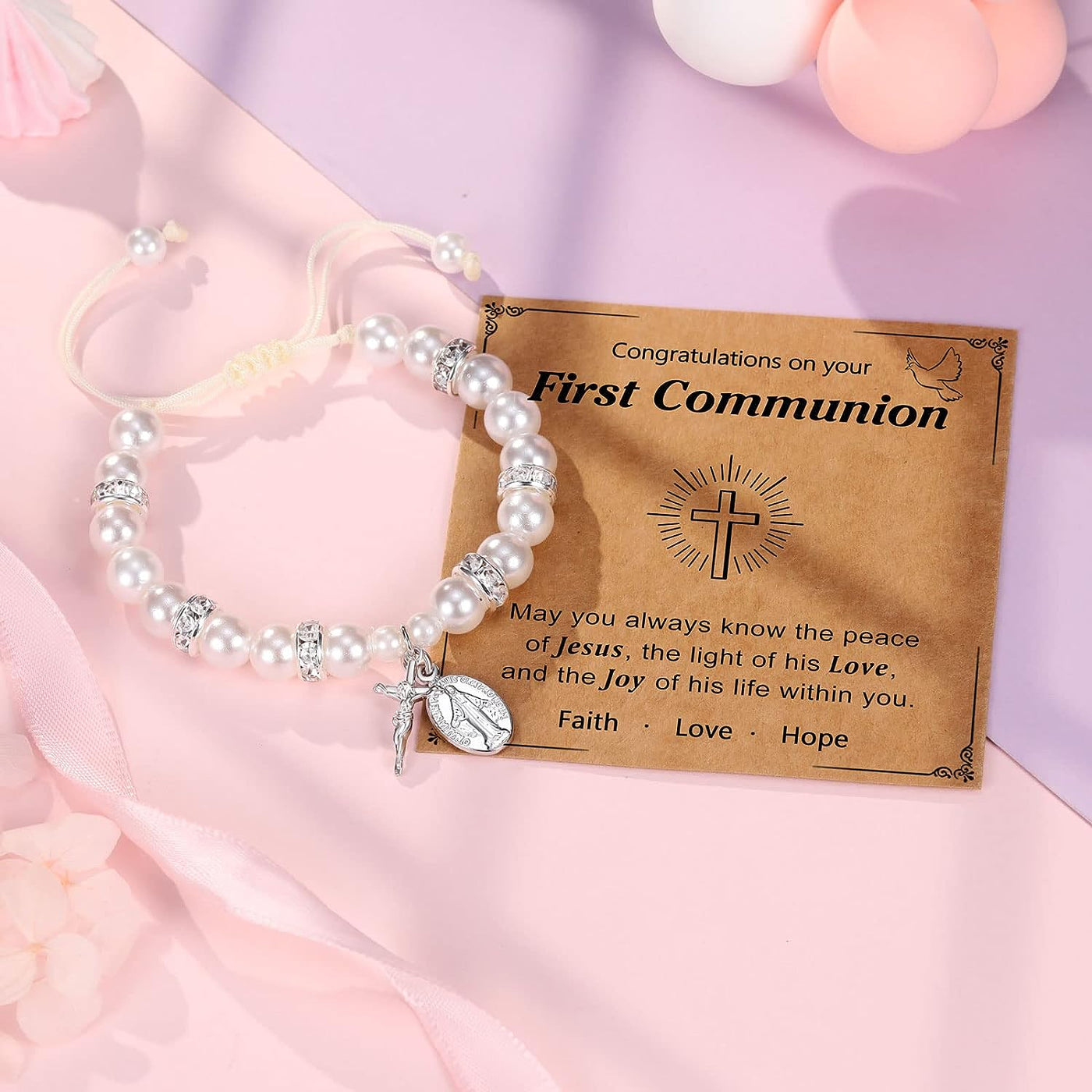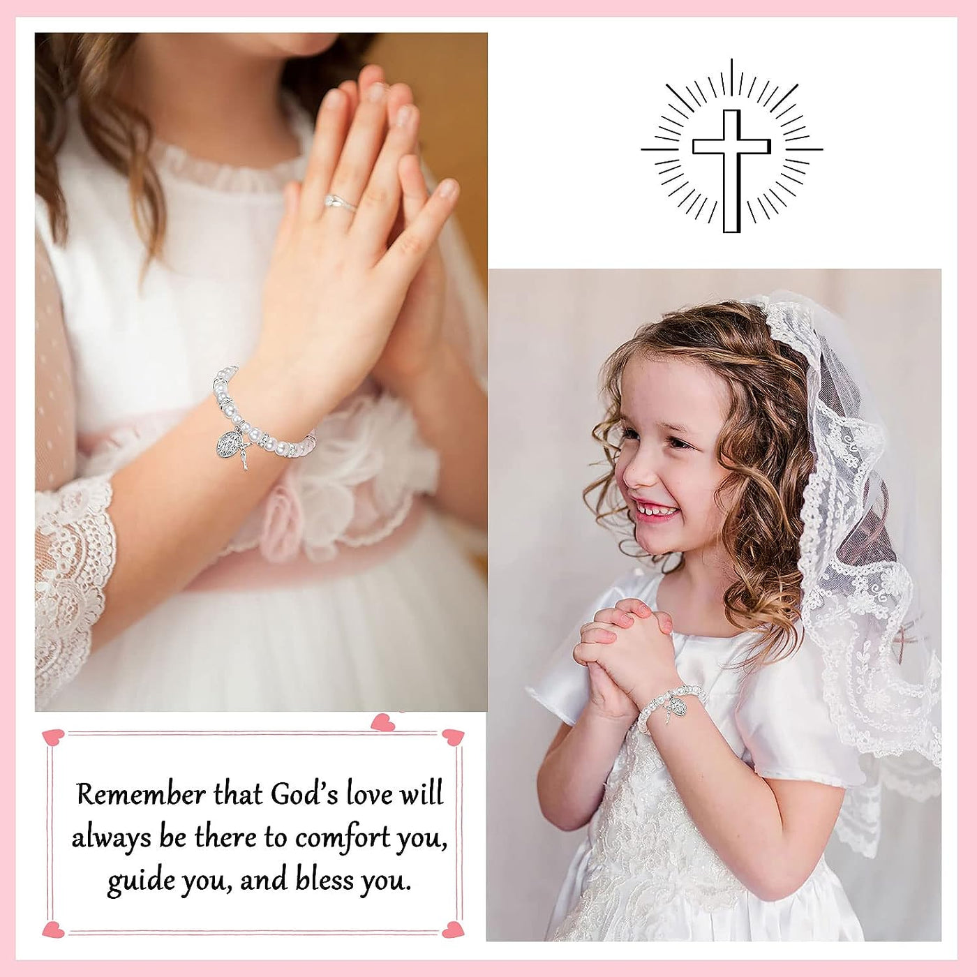 First Communion Gifts for Girls, Rosary Cross Bracelet First Communion Gifts for Girls Teens - First Communion / White-Cz