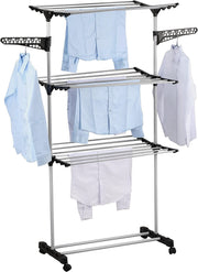 CARLA HOME Folding 3 Tier Clothes Laundry Drying Rack, Stainless Steel Tubes, Rolling Collapsible Garment Laundry Dryer Hanger Stand Rail Indoor & Outdoor Home