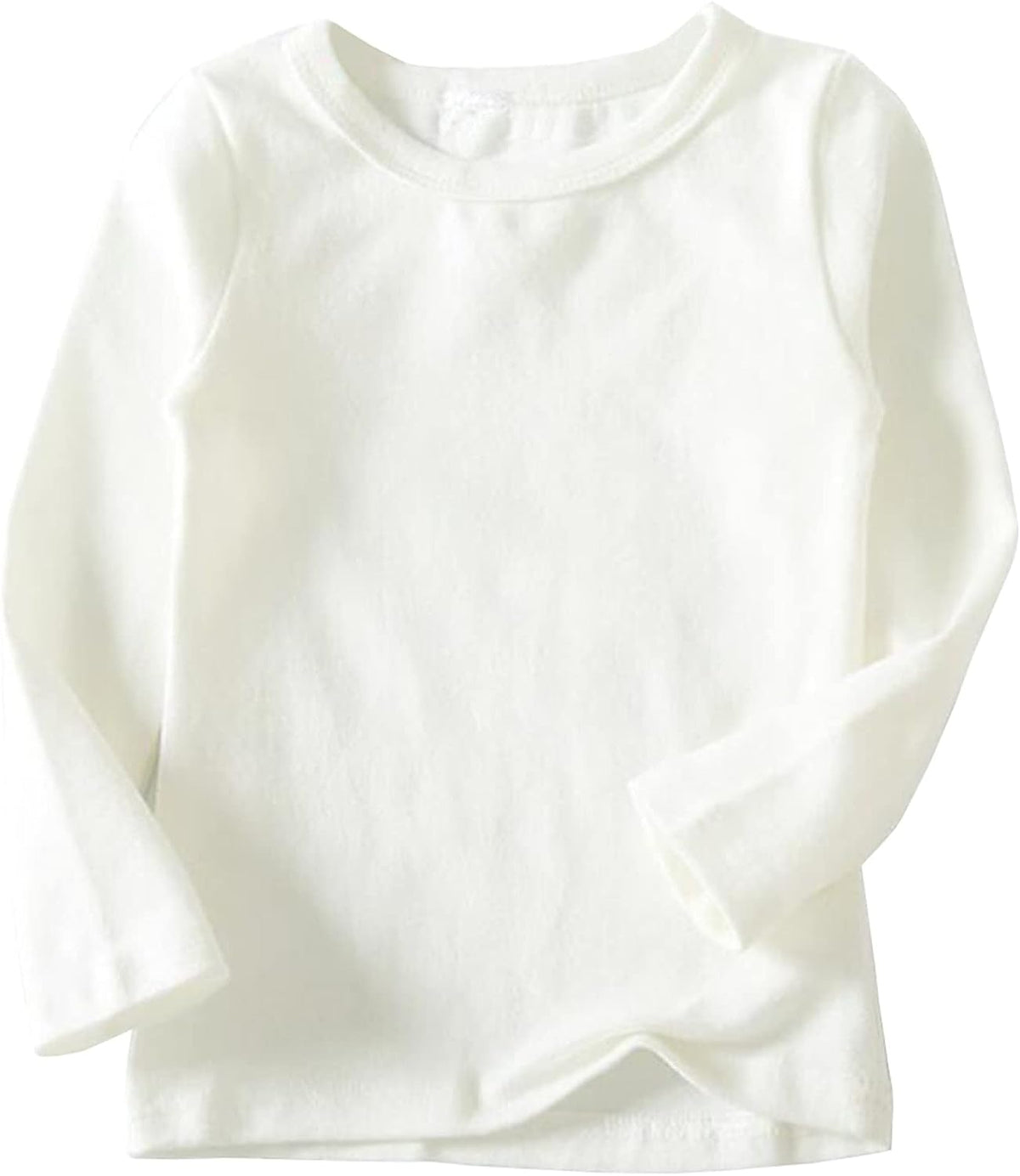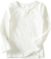 Girls Crew Neck T-Shirt Soft Warm Base Layer Toddler Little Kids Cotton Long Sleeve Tops - White / 5T