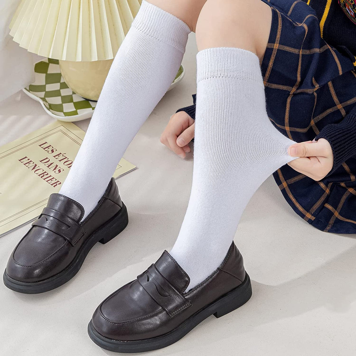 Girls Knee High Socks/Cable Knit/Ribbed School Uniform Socks 3/6 Pack Seamless Tube Socks Unisex Kids Soccer Socks 3-14 Years - 8-10 Years / White, 3 Pairs