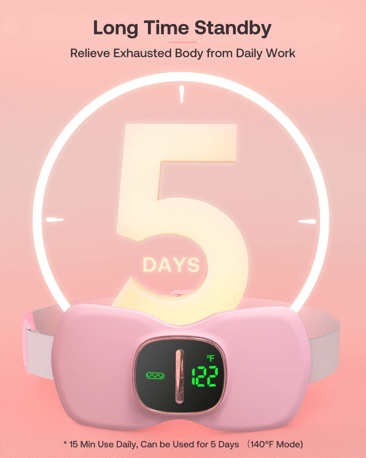 Large Digital DispalyThe cordless heating pad has a unique LED display screen, which shows the temperature directly. Physical buttons are more convenient than touch buttons, the control speed is faster, which can also avoid false touch. | Soft-to-TouchThe back of electric heating pad is made of high-quality soft fabric, which is light and breathable, comfortable and can dissipate heat evenly. | Type-C RechargeableBuilt-in Battery. Enjoy the freedom of cordless heating with our built-in 2000mAh lithium battery. Say goodbye to tangled cords and use our portable heating pad wherever and whenever you want. | 21° Bionic RadianErgonomically fit the lower abdomen. This electric portable heating pad device built-in latest graphene heating film. Safe and healthy, fast warming, no need waiting.The heating pad deliver heat to your body to improve Blood Circulation and Relax the Muscles. It is suitable for relieving menstrual pain, lower back or abdominal pain. |