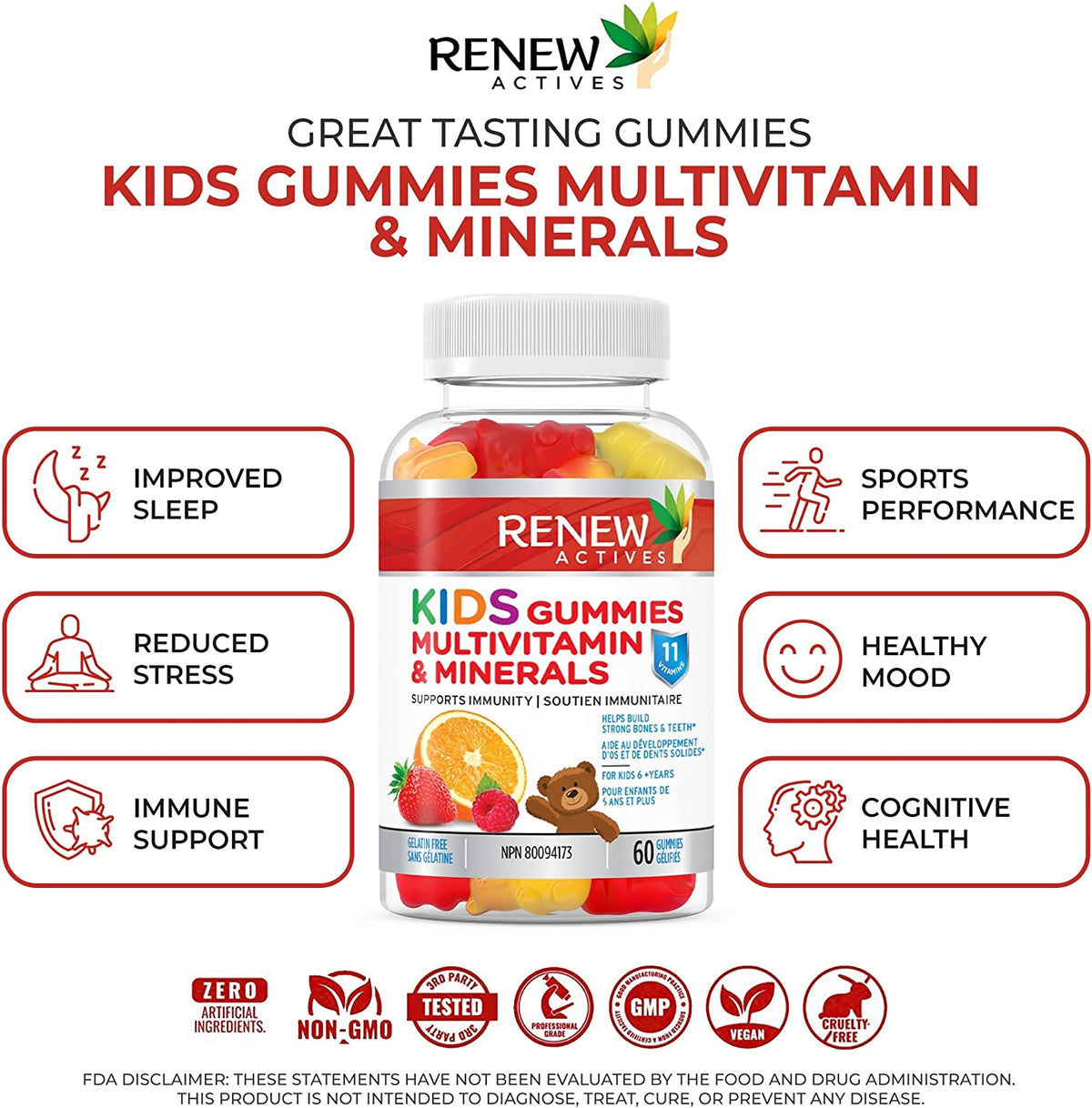 HEALTHY, HAPPY KIDS START HERE! - Getting your kids to eat enough fruit and vegetables is nearly impossible. Time to make your life easy, and your kids happy. Renew Actives YUMMY multivitamin for kids - gives them a HUGE burst of nutrients.