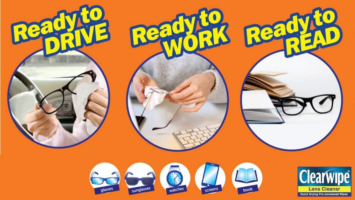 Clearwipe Lens Cleaner Wipes are premoistened wipes designed to easily clean glass lenses without scratching. It is infused with a cleaning solution that dries instantly and leaves no streaks. Keep your glasses, lenses and sunglasses dustproof, lint and streak-free clean. It also works on DVDs, television screens, camera lenses, cell phones, MP3 players, electronic readers and more.