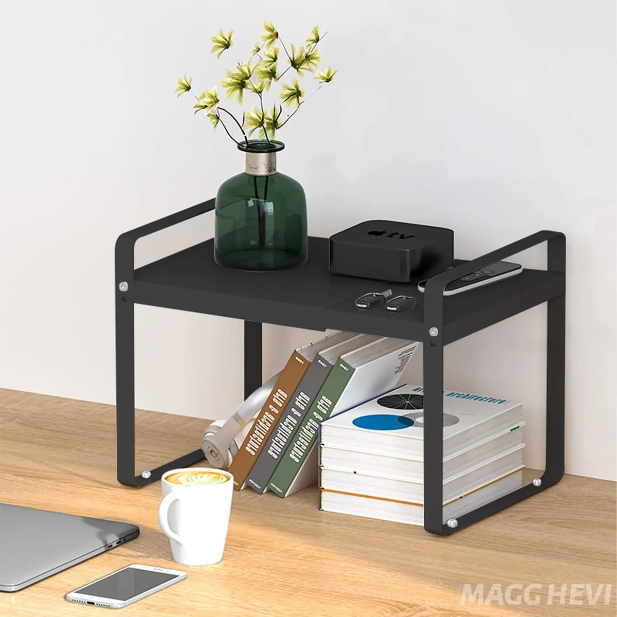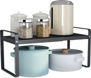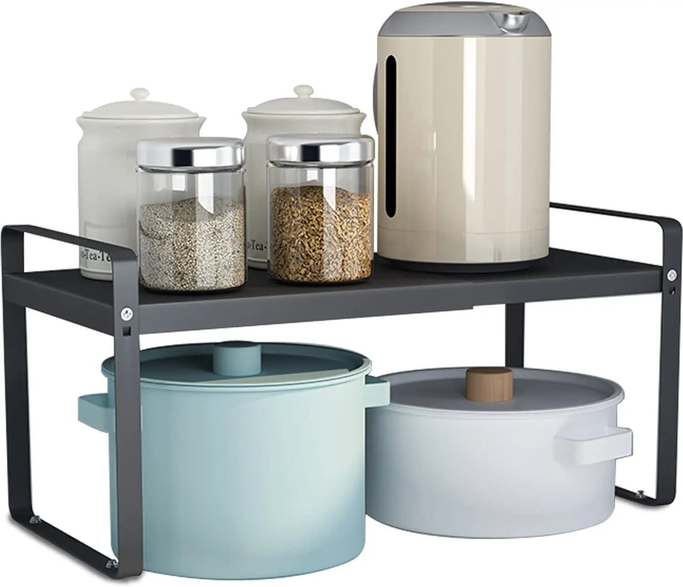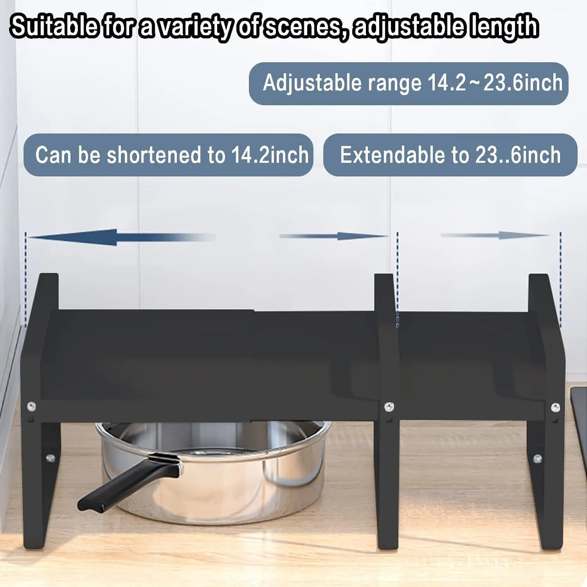 MAGGHEVI Expandable Cabinet Shelf Organizer Storage Rack,Cupboard Stand Spice Rack,Pantry Shelves Space Riser for Kitchen Bathroom,Metal Plate Heavy Duty Nonslip (Black) - Black