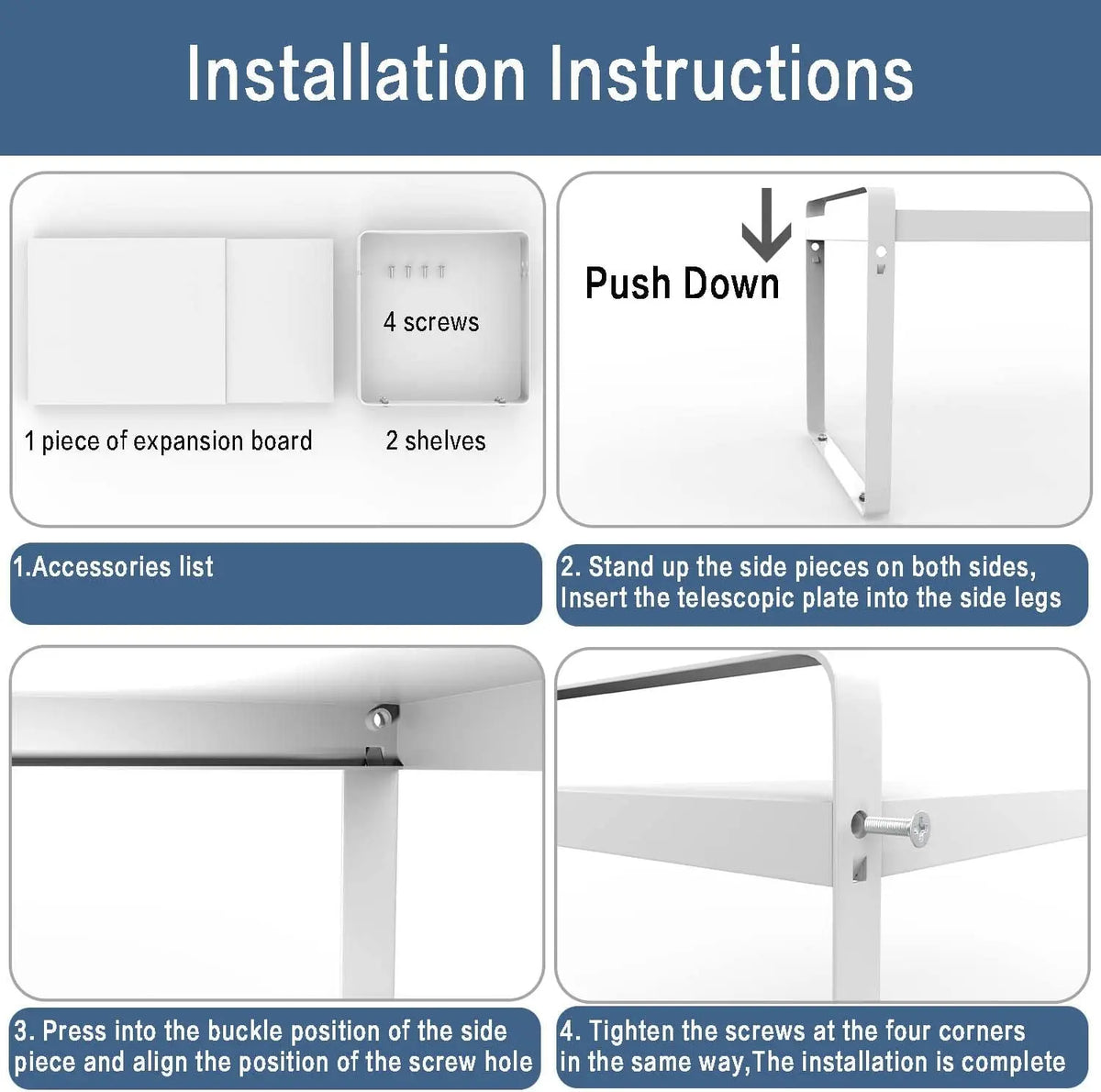This cabinet shelf is able to create plenty of space for your household items such as bottles, bowls, cookware, spices or canned foods without dominating space in your pantry.This pantry storage organizer made of sturdy metal with the thicken powder coated, features strong rustproof. Comes with all needed accessories and step-by-step instruction, It is easily and conveniently to install. Remember to watch the installation video on the page!The anti-skid pad on the bracket prevents slipping.