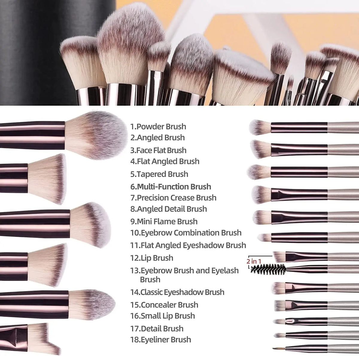 Makeup Brushes Premium Synthetic Foundation Powder Concealers Eye Shadows Silver Black Makeup Brush Sets(18 Pcs) - Black,Gold,Silver