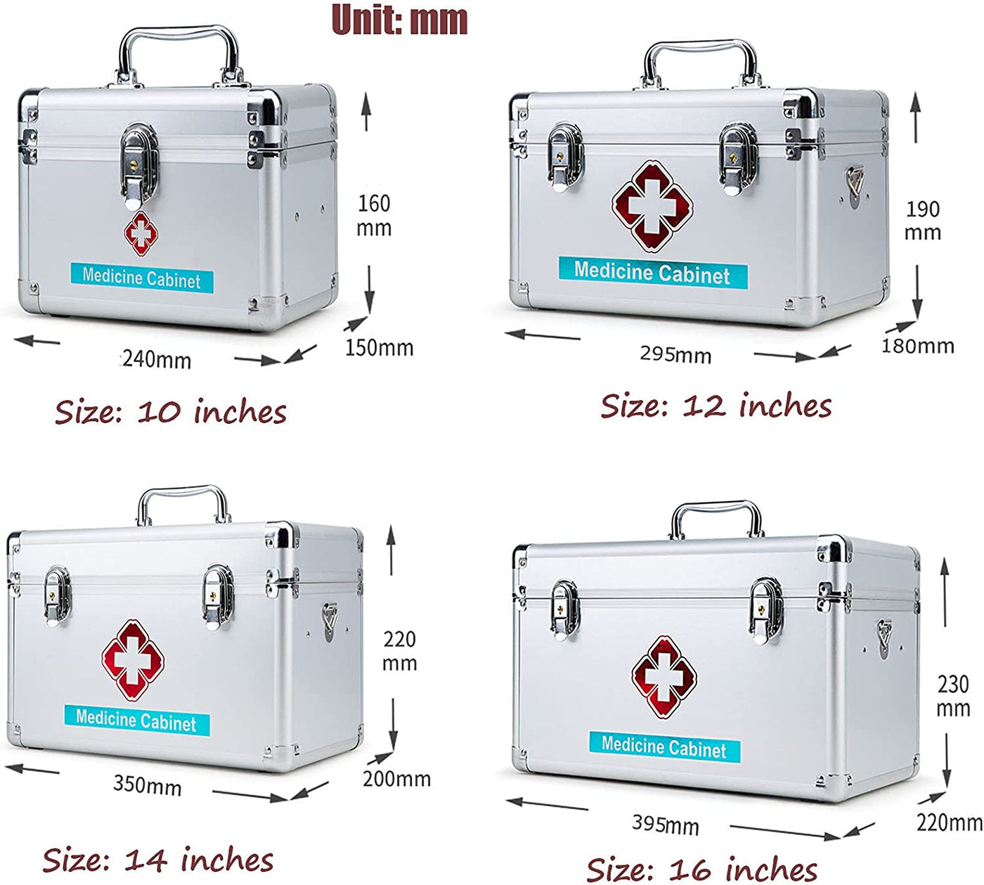Medical Storage Box,With Two Safety Locks,Portable Storage Travel Kit Box with Removable Tray and Handle,Medical Supplies Box for Business,School,Car or Home,12In - 12In