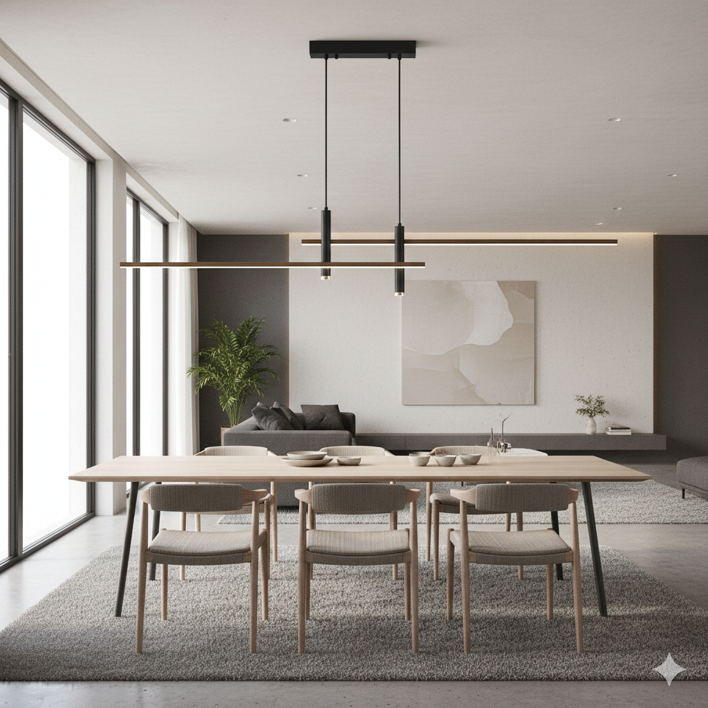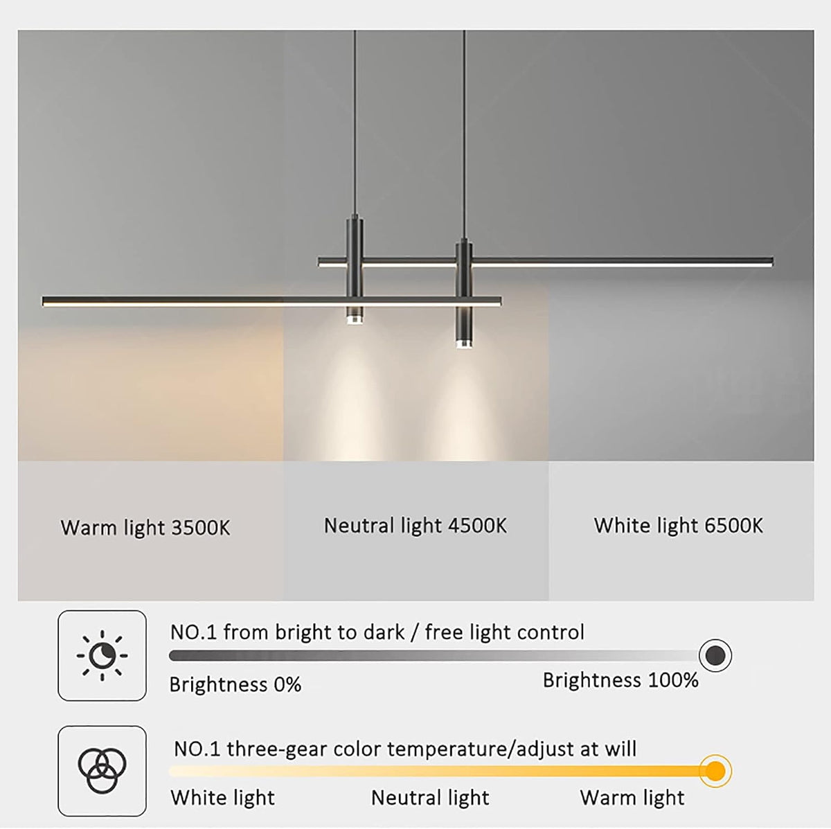 Modern Dimmable LED Pendant Lighting for Kitchen Island - Linear LED Chandelier with Spotlights, Adjustable Hanging Light for Dining Table, Energy Class A, Iok34-003 - 120Cm/47Inch Black