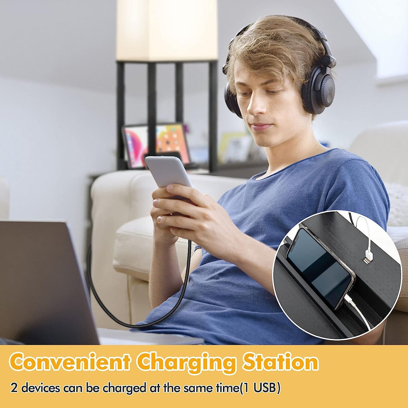 3-in-1 Multipurpose Design: This shelf lamp combines the functions of storage shelf, floor lamp and charging station, perfectly satisfying your multiple demands in daily life and saving much room space. The USB port on the top shelf allows you to charge your phone or tablet with convenience.