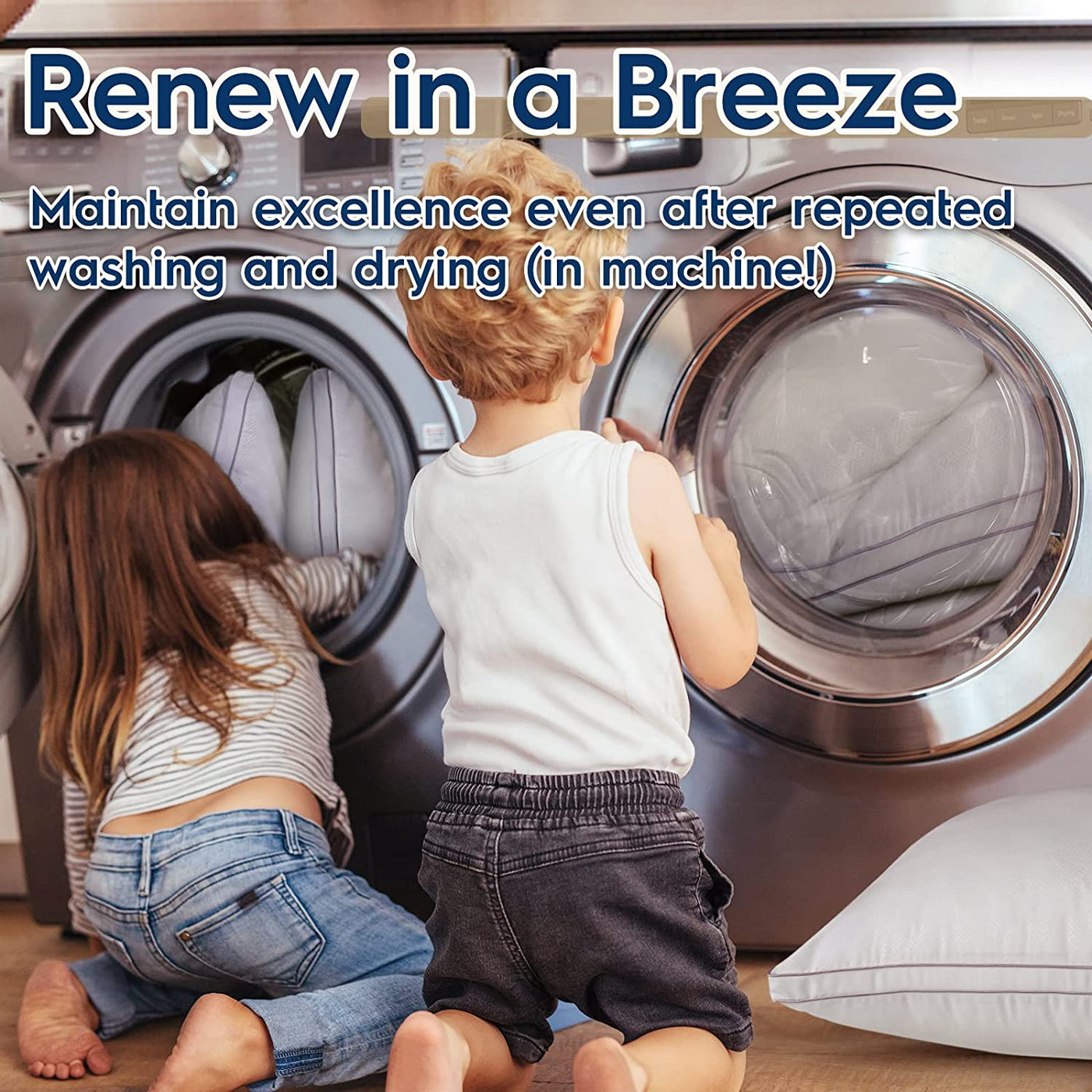 Both the inner core and the cover can be machine washed and dried. Just toss your pillows into the washing machine and tumble them dry for easy home care. And they keep shape!