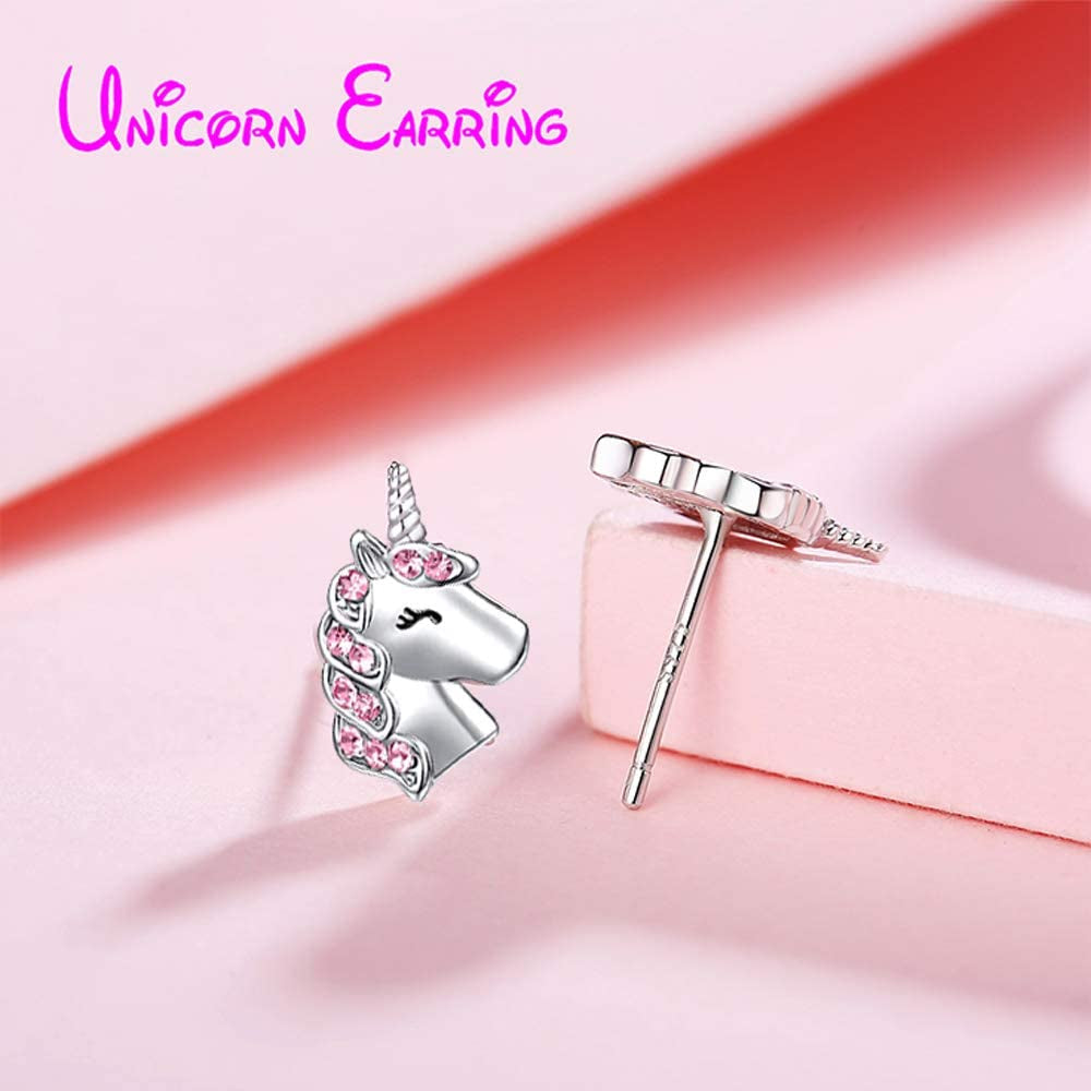 Pink Unicorn Stud Earrings Girls Cute Unicorn Earring Sparkling with Zircon for Little Girls Kids Jewelry Birthday Party