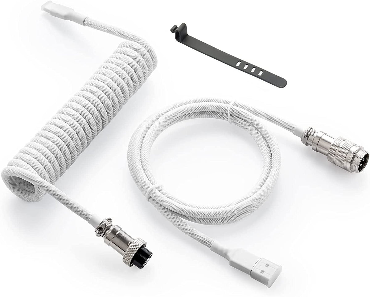 Pro Custom Coiled USB C Cable for Gaming Keyboard, Double-Sleeved Mechanical Keyboard Cable with Detachable Metal Aviator, 1.5M USB-C to USB-A, White Color - White