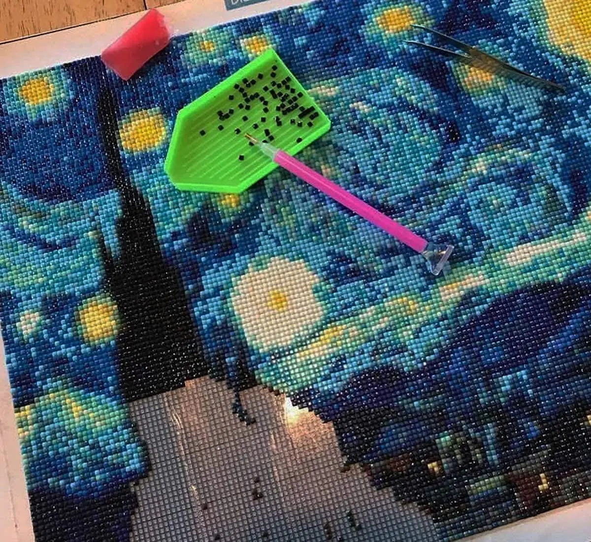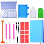 【20-in-1】 -- 1 x 28 grids storage box, 1 x metal tweezer, 4 x Diamond pen, 3 x Diamond tray, 10 x red clay, 1x tool bag, total 20 pieces. With them, You will no longer need any others diamond painting accessories.