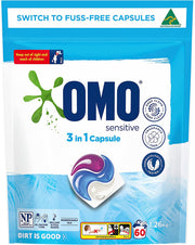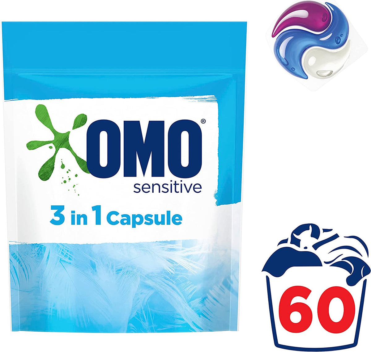 Sensitive 3 in 1 Laundry Detergent Liquid Capsules 60 Washes, 1.26Kg, Fragrance Free - 60 Pack