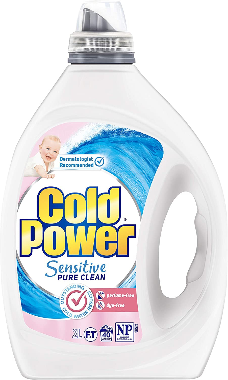 Dermatologist recommended formula. Outstanding results even in Cold Water Dermatologically tested, Cold Power Sensitive Pure Clean provides outstanding performance, while being gentle on skin, thanks to reduced potential irritants – no dyes, enzymes or fragrances Cold water washing uses less energy, reduces environmental impact and is gentler to your clothes. Cold Power is the smart choice for your laundry! Choose Cold Power Sensitive Pure Clean Dermatologist recommended formula for outstanding results in Cold Water.