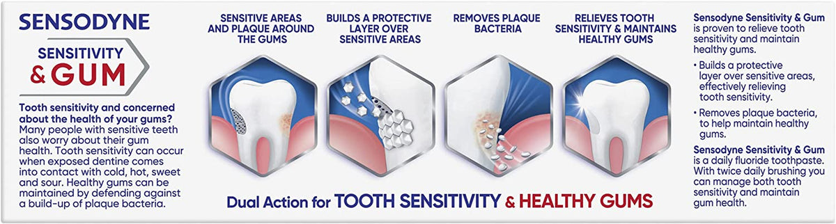Sensodyne Sensitivity & Gum Dual Action Toothpaste with fluoride is proven relief and daily protection for sensitive teeth.