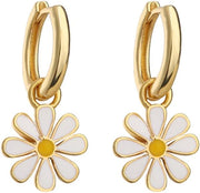 Small Hoop with Daisy Flower Charm Earrings for Women Teen Girls Cartilage Hypoallergenic Nickel Free Dainty Cute 14K Gold Plated Lucky Flowers Short Dangle Drop Piercing Hinged Huggie Hoops Fashion Jewelry - White