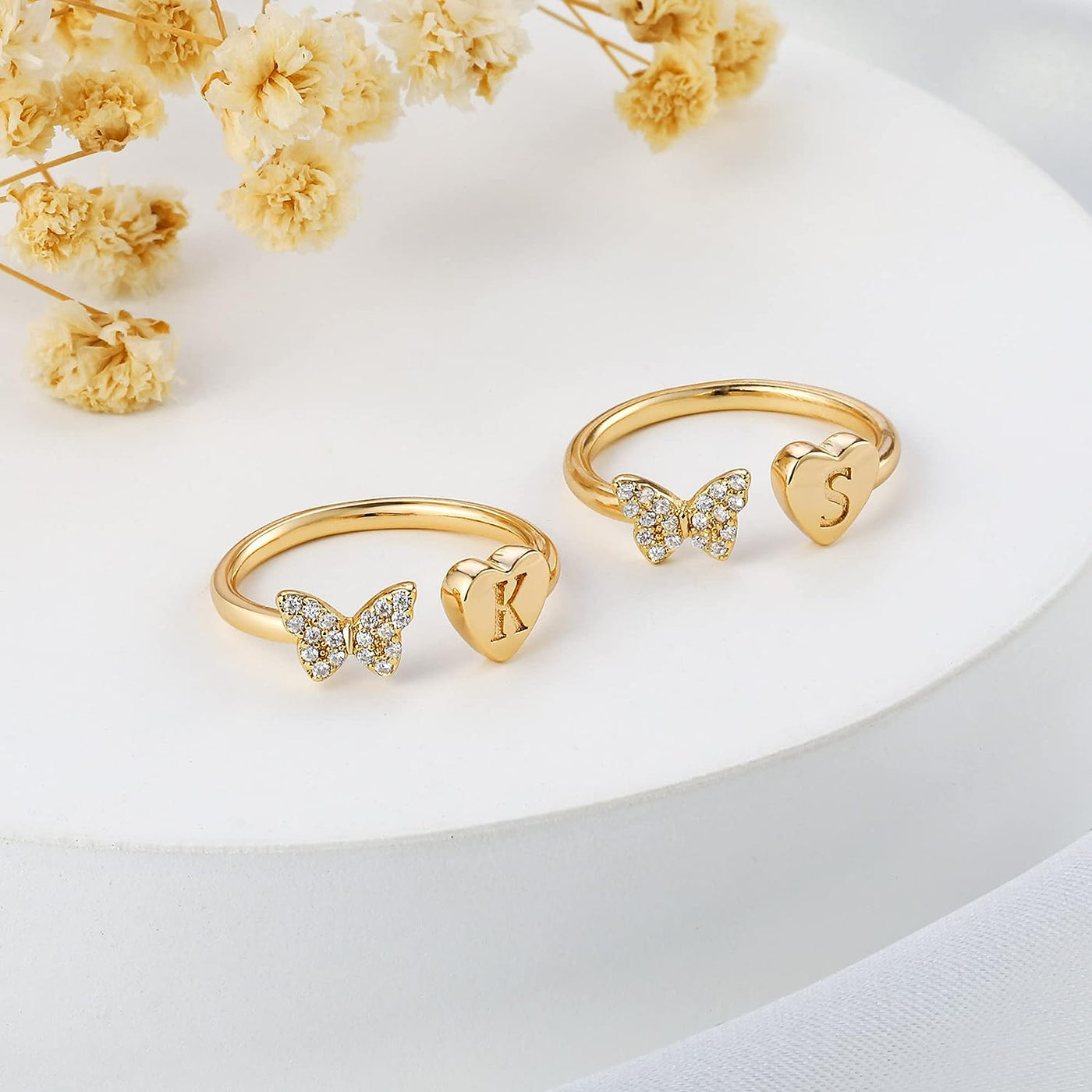 Butterfly Initial rings, simple but cool, this rose gold rings is absolutely a creative way to show your specialty.