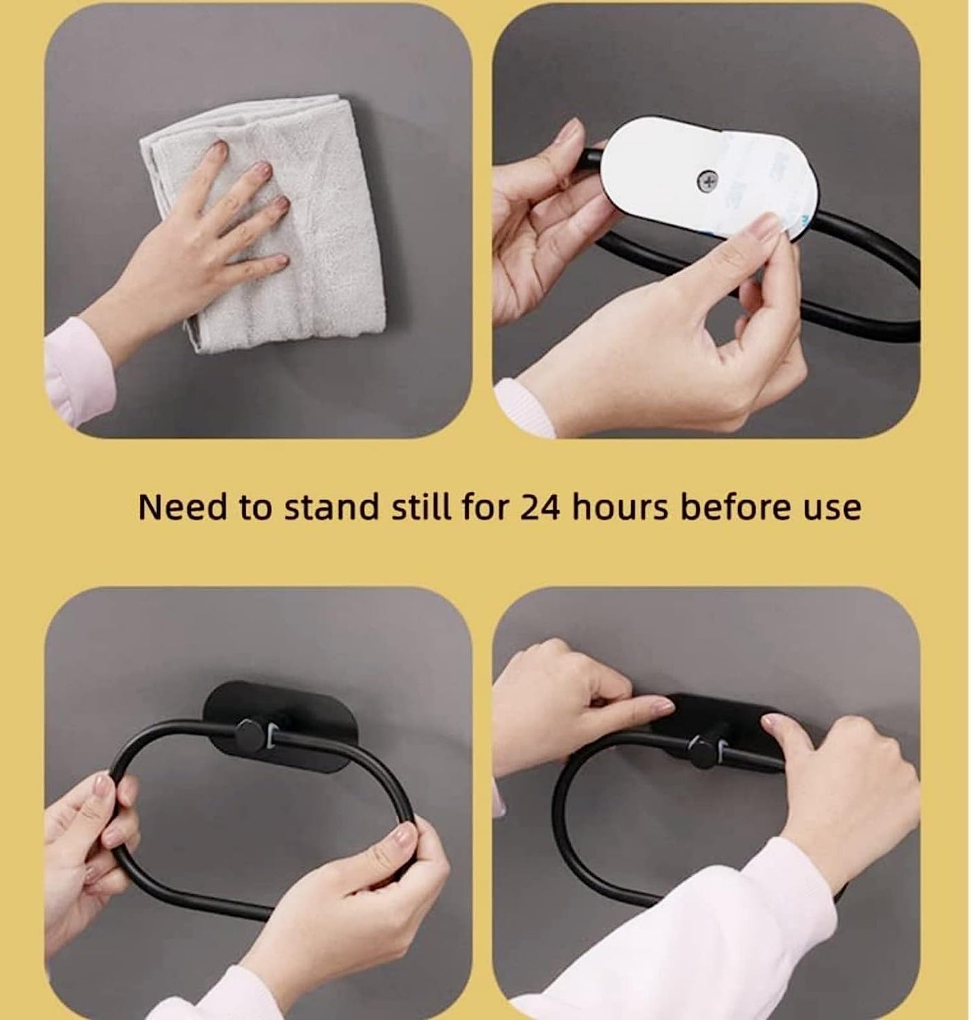 Enjoy life Why choose our towel ring? The DAYEE towel ring helps keep your towels within reach when you take a shower or wash dishes. The towel holder does not require any tools and is simple and quick to install. It won't damage your walls. The towel holder is waterproof with 3M tape. Never have to worry about it falling off. The modern design of the towel rack can spice up your bathroom and kitchen. The towel ring has a plastic washer attached to the ring and organizer that protects the ring when it moves and remains silent. Flexible movement 180°. Installation procedure: Step 1 Select the wall and location to install and clean. Leave to air dry or dry with paper towels. Step 2 Peel off the 3M sticker protective film and attach the towel ring to the wall. Step 3 Press the base firmly against the wall with your hands. Then hang the towel 48 hours later.