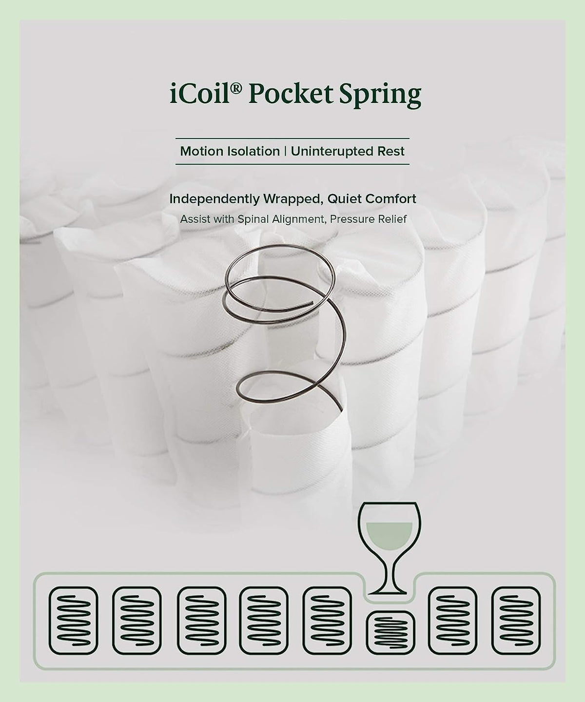 - A foolproof combination of individually wrapped iCoil pocket spring innerspring and supportive foams topped with a durable, quilted cover result in an undisturbed, restorative sleep that will have you daydreaming about bedtime. This zoned mattress helps relieve back pain. A premium high quality online mattress.