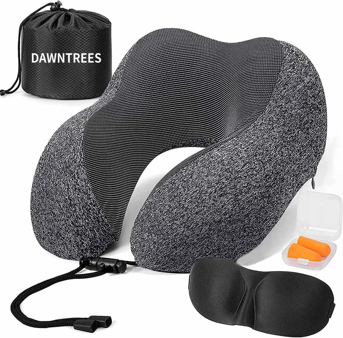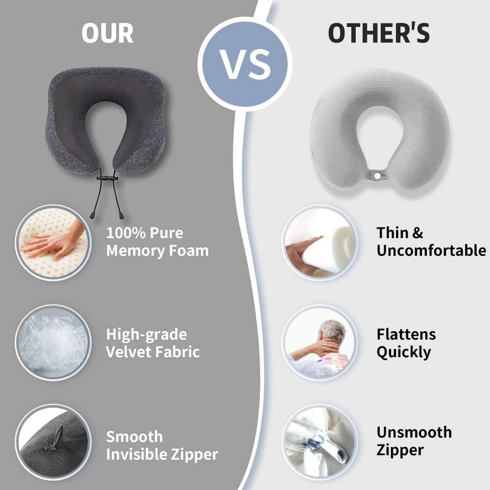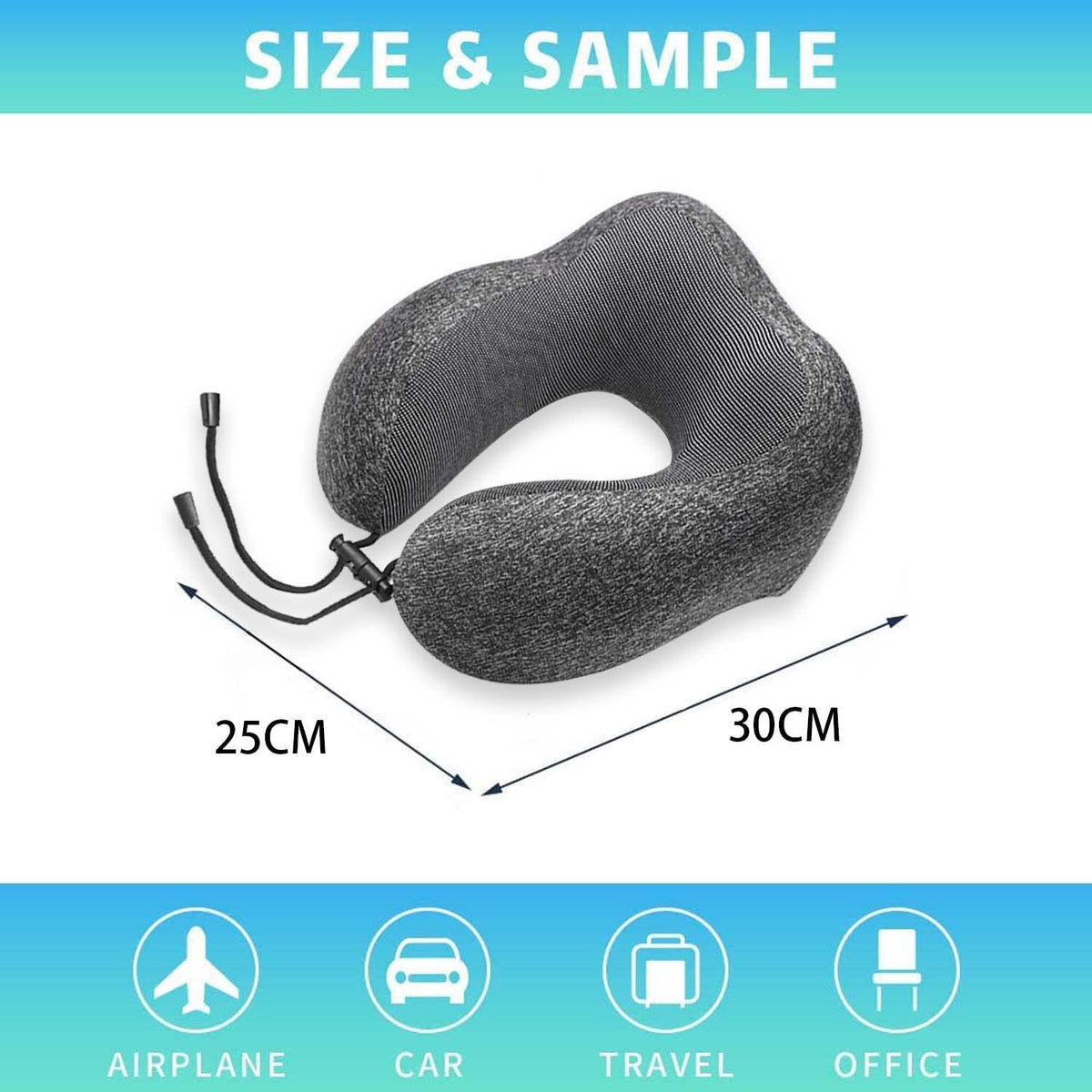 Travel Pillow Neck Support,Memory Foam Neck Pillows for Travel Airplane, 360-Degree Head Support,Travel Kit with 3D Contoured Eye Masks,Earplugs. - A Gray Black