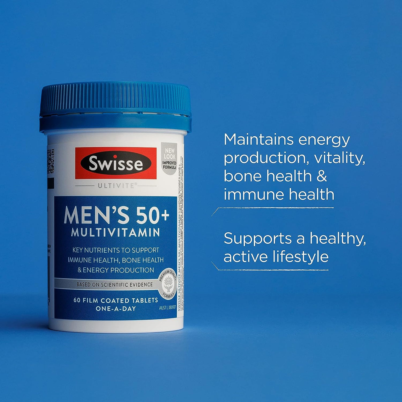 Swisse Ultivite Men's 50+ Multivitamin is scientifically formulated to provide a comprehensive blend of vitamins, minerals and herbs to support a healthy, active lifestyle. Tailored specifically for men 50 years and over, this multivitamin supports immune health, healthy bones, energy production and helps prevent dietary nutritional deficiencies.
