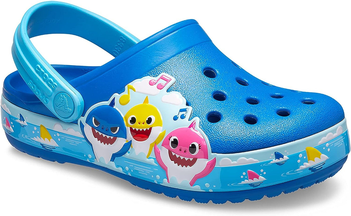 Baby shark, doo doo, doodoo doodoo! Kids who love the Baby Shark song will love these clogs from the Fun Lab, featuring the whole shark family on the band. Crocs Fun Lab clogs and sandals feature original character-rich graphics and other inspired designs to help kids express themselves and engage new friends. Step into more fun with a new pair from the Fun Lab!